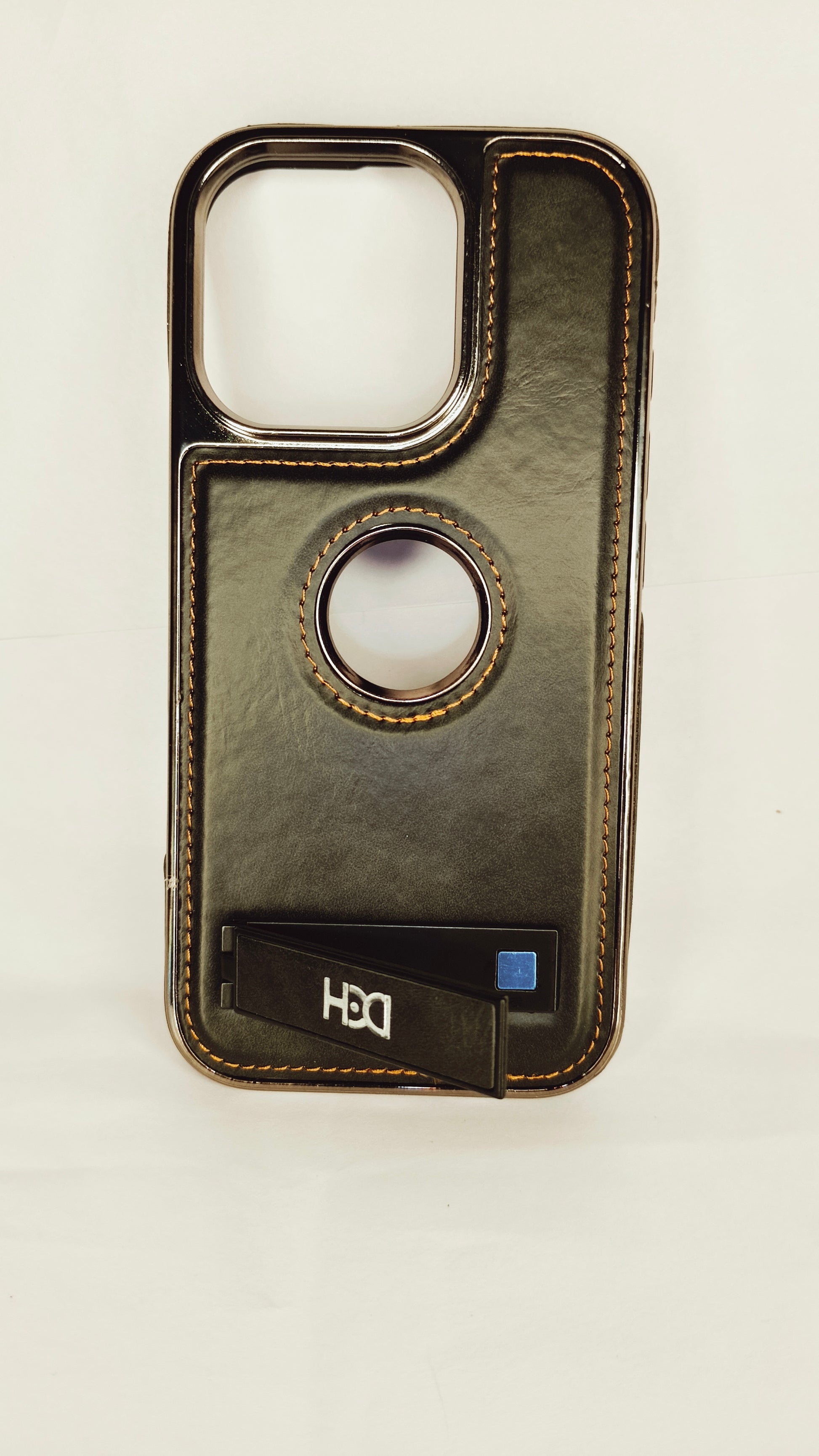 Premium Luxury Leather iPhone 16 Pro Case with Kickstand & Ring Cutout – Shockproof Metallic Edge Protective Cover